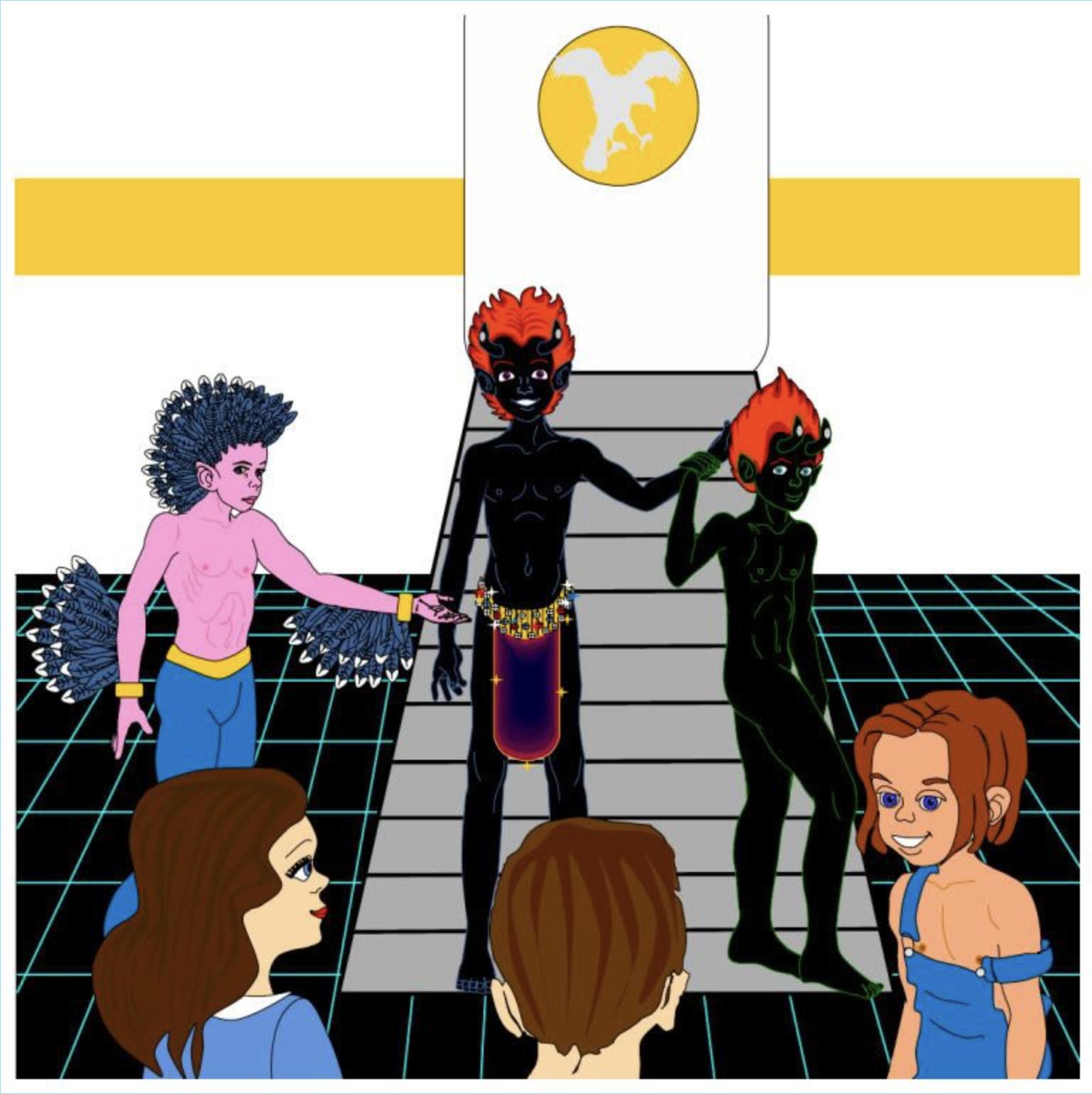 The “bride” and “groom” (as Humans would call them) come from their own houses and proceed to the centre of the village, each carrying a bejewelled circlet of woven gold. They stand and look at each other and recite vows of loyalty, love and responsibility. They then place the circlets on each other's heads. This is the point when the two people are considered to be “married”.
