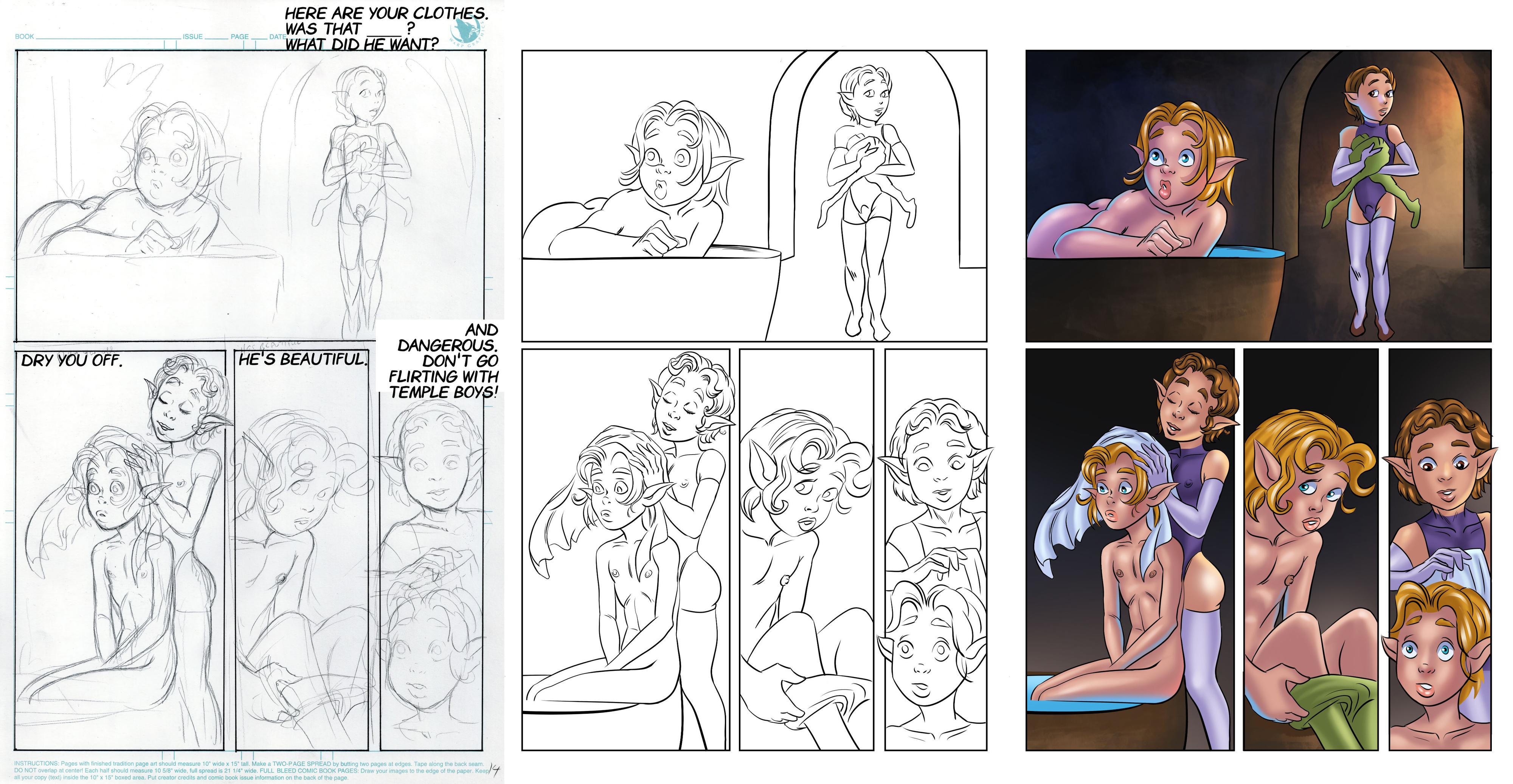 Page 10. Starting with this one, I asked the artist to send me the inked page, so we can see the whole process.